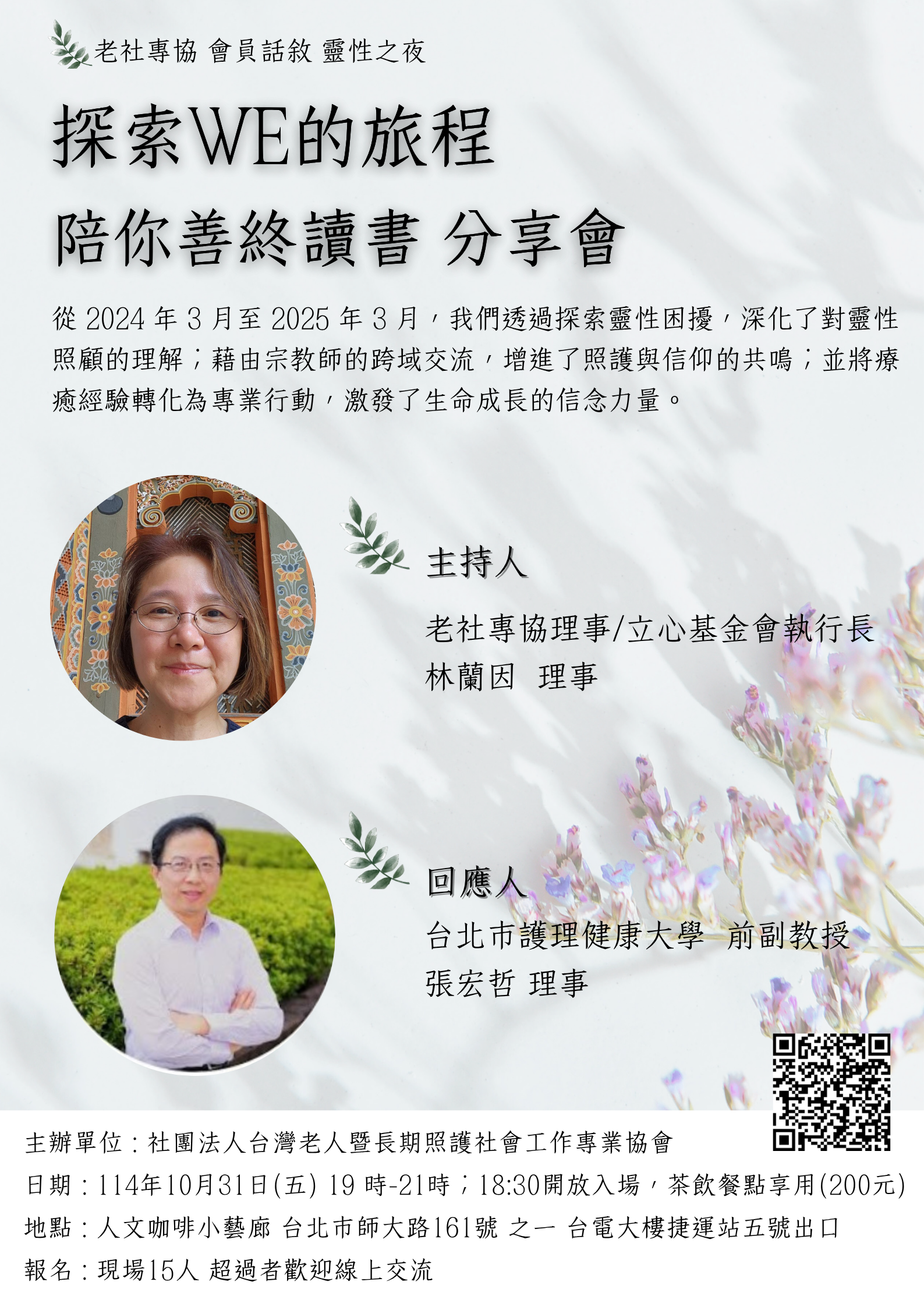 老社專協 會員話敘 靈性之夜 WE的旅程-陪你善終讀書會 分享會